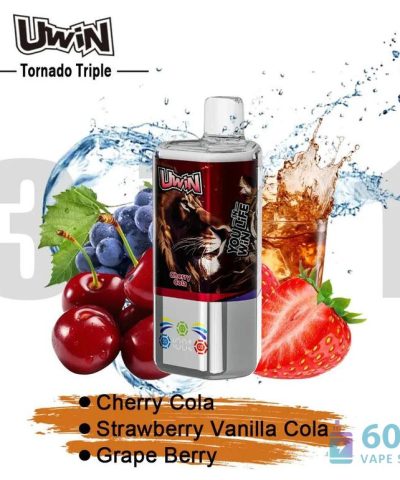 Zasilany wytrzymałą baterią kobaltową o pojemności 650 mAh z szybkim ładowaniem typu C. Uwin Tornado Triple zapewnia stałą, mocną produkcję pary. Jego cewka siatkowa technologia zwiększa wyrazistość smaku i wytwarza gładkie, gęste chmury przy każdym wdechu. Ergonomiczny korpus o wymiarach 47 × 47 × 116 mm idealnie leży w dłoni, podczas gdy Wskaźnik e-liquidu wyświetla w czasie rzeczywistym poziom naładowania i stan baterii, zapewniając bezproblemową podróż.